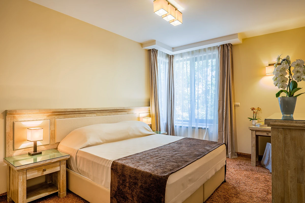 Интериорът съчетава топли естествени тонове, класически линии и комфортна атмосфера — идеален избор за семейства и професионалисти, които търсят качество, спокойствие и удобство.