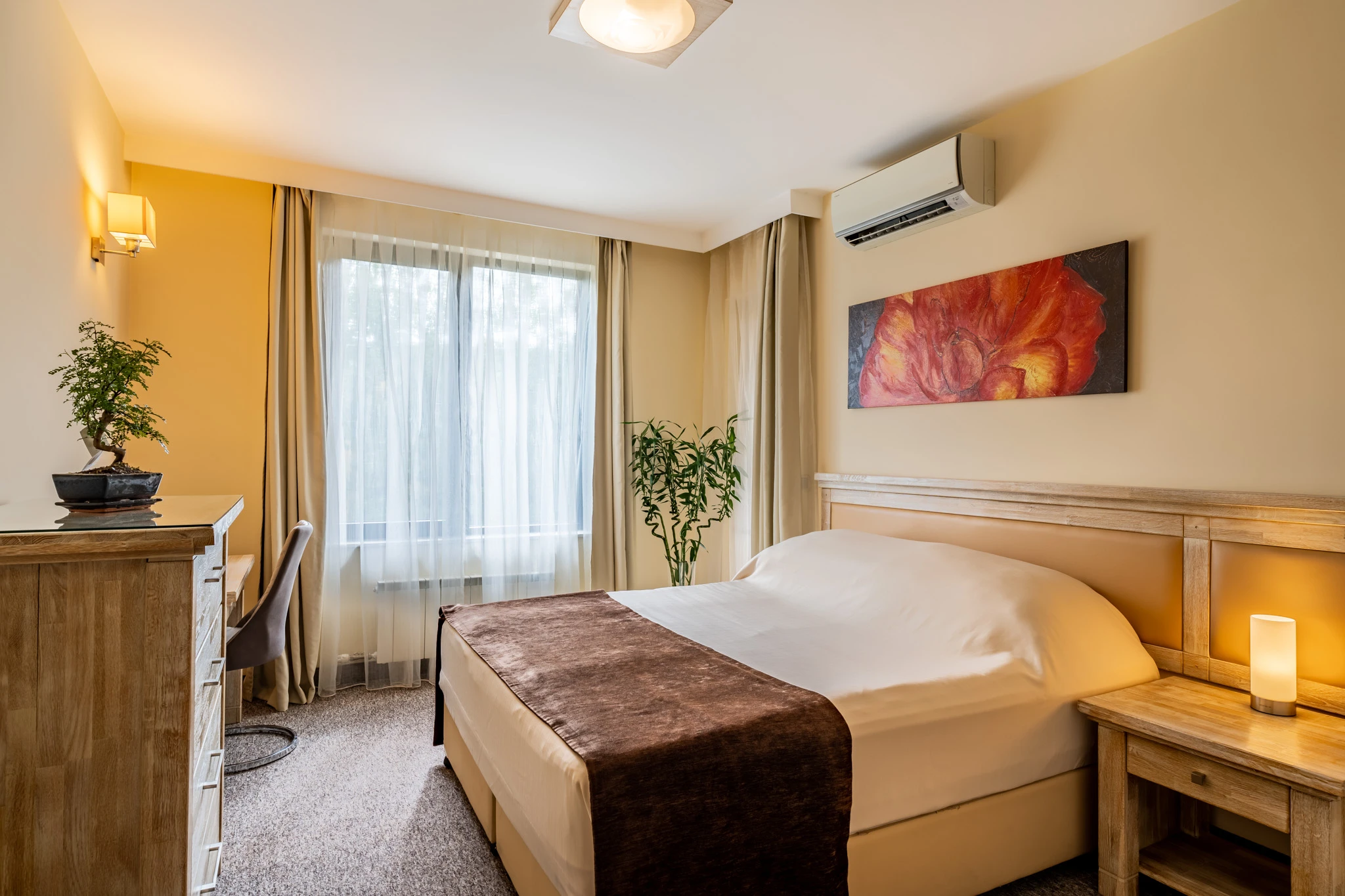 Спалните са с естествена светлина и удобни зони за съхранение. Баните са завършени в меки, топли тонове и широки плотове.